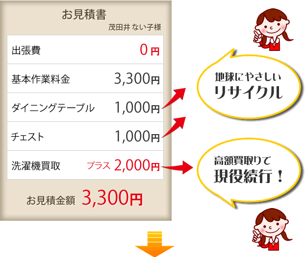 ※ 重さ・大きさ・搬出状況により料金は異なる場合がございます。